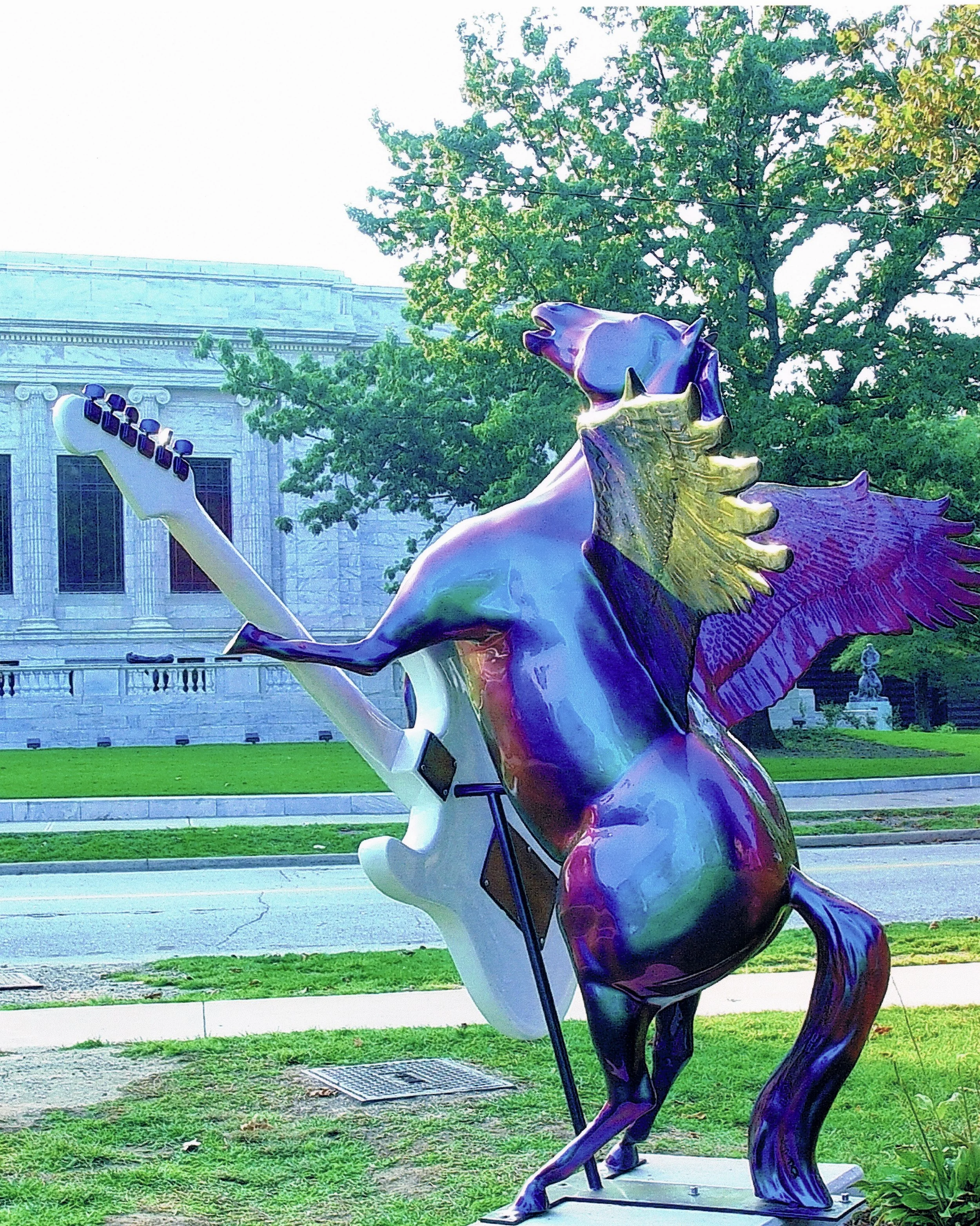 Outside one of Cleveland’s most revered cultural institutions, the Cleveland Museum of Art, this 12-foot, winged fiberglass horse paused its gallop to strike a power chord. “Horseplay” fuses classical form with rock ‘n’ roll attitude — a surreal nod to the blend of tradition and experimentation that defines both art and music.