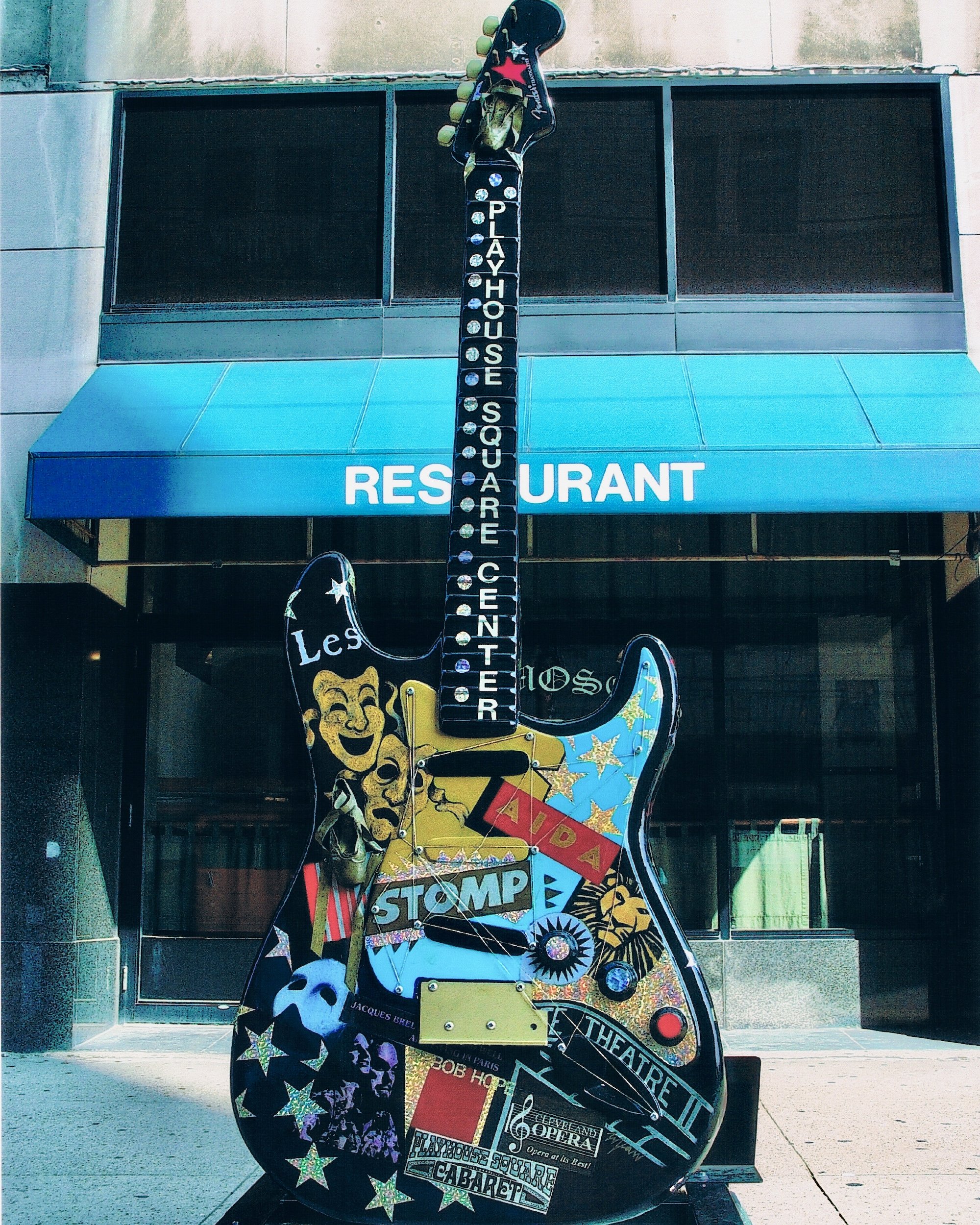 Koverman, known for his set design and gallery work in Little Italy, captured the spirit of Cleveland’s downtown resurgence in the early 2000s. This artwork reflects not just a business, but a city in tune with its architectural rhythm. Huntington Bank, with more than a century of service in Ohio, sponsored the piece as part of the 2002 GuitarManiaproject, where music met civic pride.