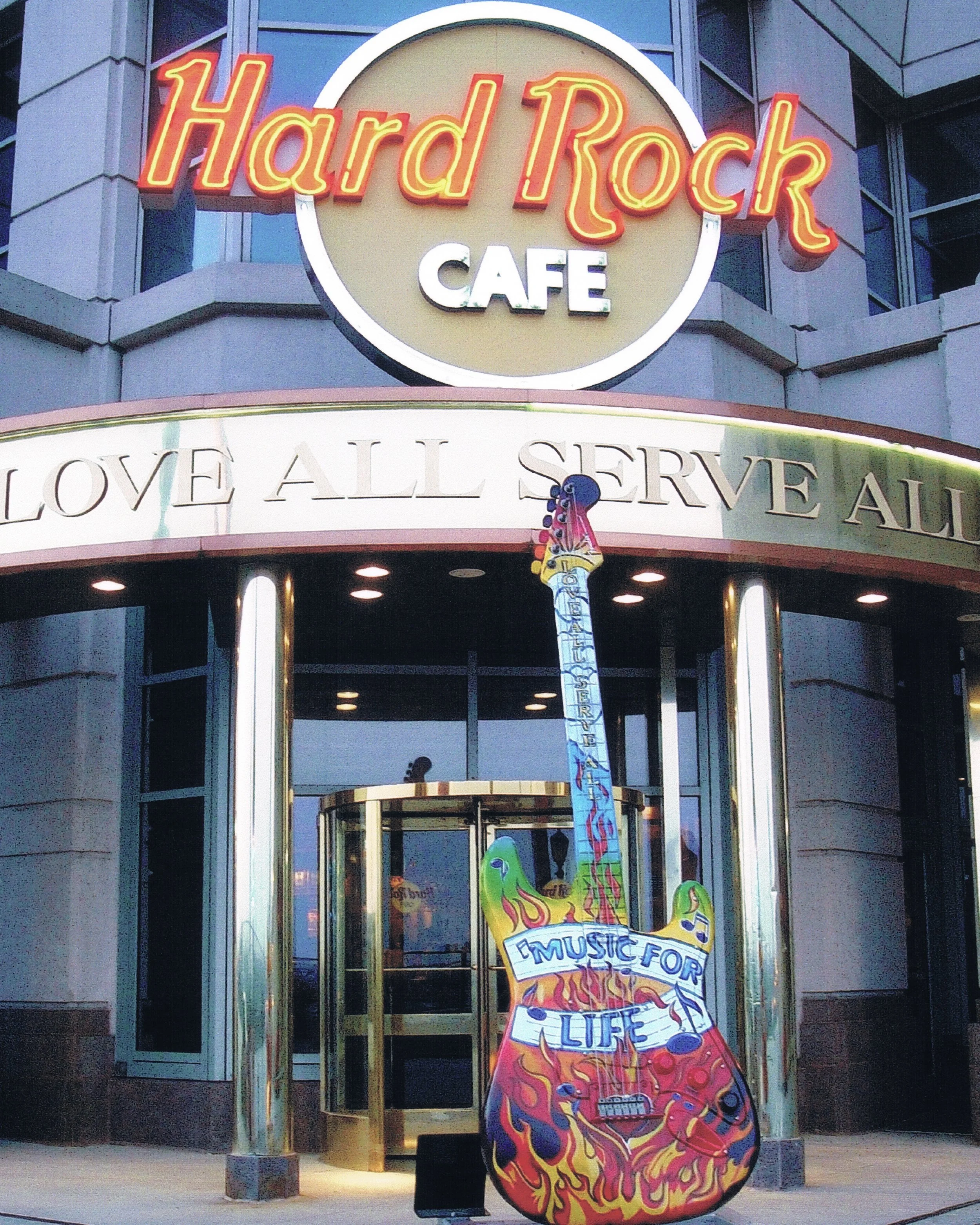 📍 Location: Hard Rock Cafe, Cleveland – under the “Love All, Serve All” marquee